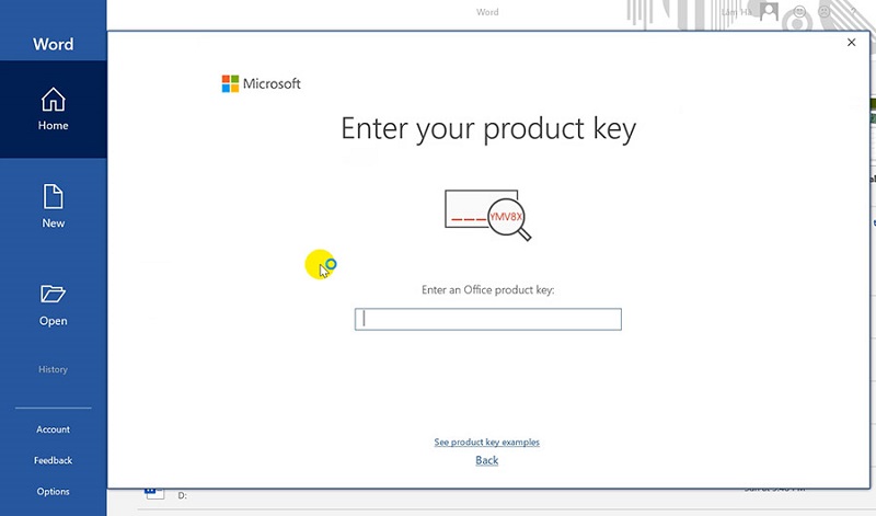 Bước 4: Khi mở một ứng dụng Office lần đầu tiên (ví dụ như Word), sẽ xuất hiện thông báo yêu cầu nhập key kích hoạt. Bạn hãy tắt phần mềm Office đang mở và tiếp tục chuyển sang bước kích hoạt.